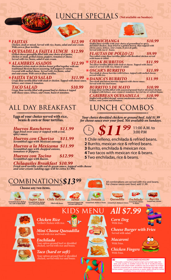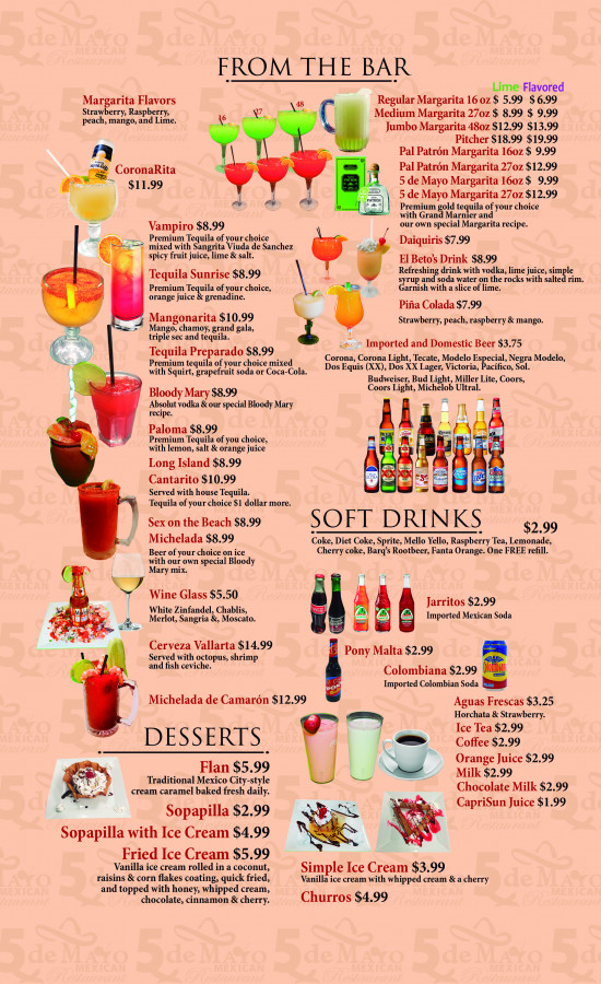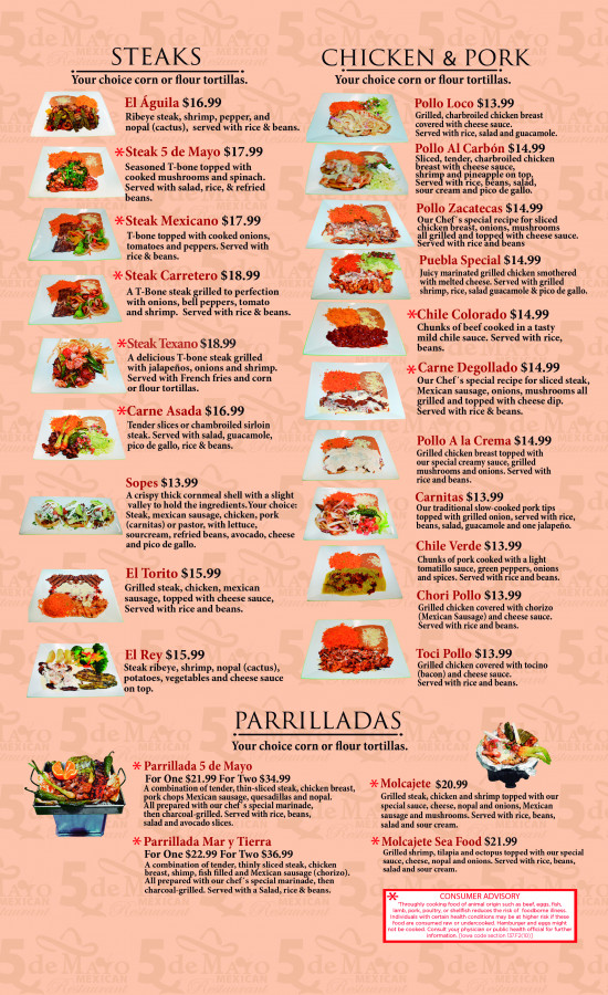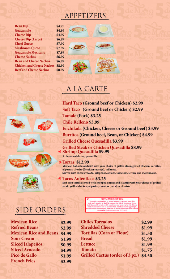 We prepare great Mexican food with authentic flavors. At 5 de Mayo Mexican Restaurant